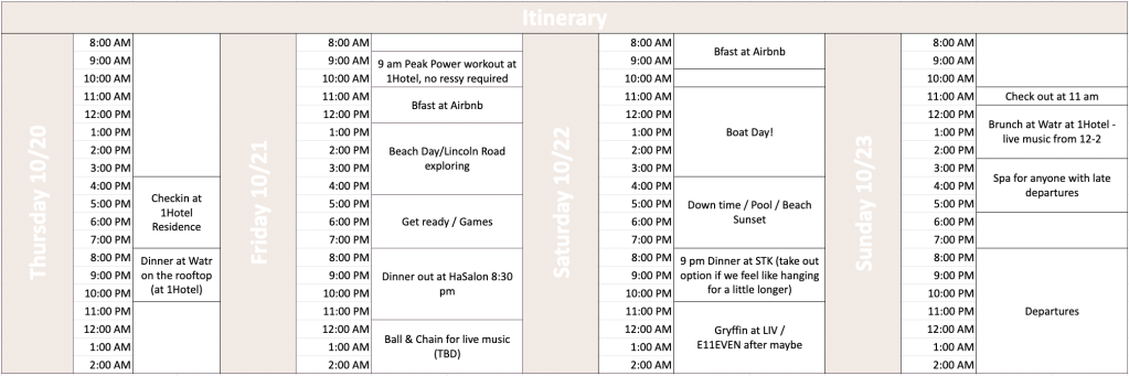 This might have been the most last minute bachelorette ever planning, but we pulled things together and it made for an incredible weekend! What I loved most about Miami was the beautiful weather and endless list of activities that we could do. Here’s a look at the weekend: