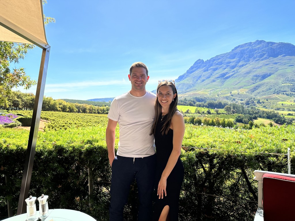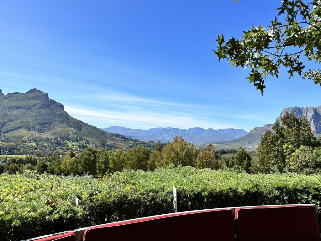 Charlie scooped us at 9am and we headed to Stellenbosch. According to local and world legend, Stellenbosch is to South Africa what Napa is to the United States. Our first stop was a traditional winery to wet our palettes. We sipped at a charming patio next to a large square of green grass, tall trees, and birdsong. Our second stop was a modern winery, Tokara. Honestly, to Brian the wine all tasted the same, but the views from Tokara were beyond impressive. Plus, we added on an olive oil tasting. Turns out they don’t encourage drinking the olive oil, so bread was needed, and welcomed.