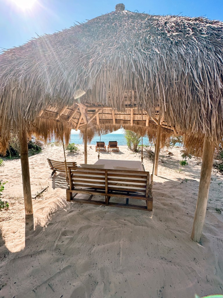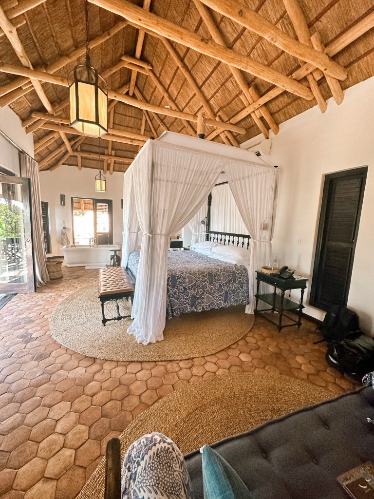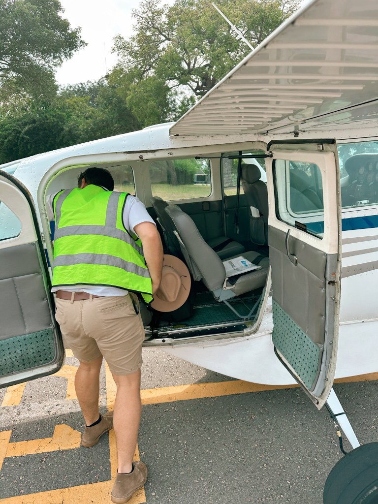 We then met our bush Uber near the river. They had our bags and a packed breakfast! They took us 20 minutes to the airport where our pilot came to meet us and we boarded a single prop Cessna. It was cool to fly fairly close to the ground to watch for elephants. From the Kruger airport, we took a normal jet plane to Mozambique. Then, our final ride – a choppa to the island of Benguerra!