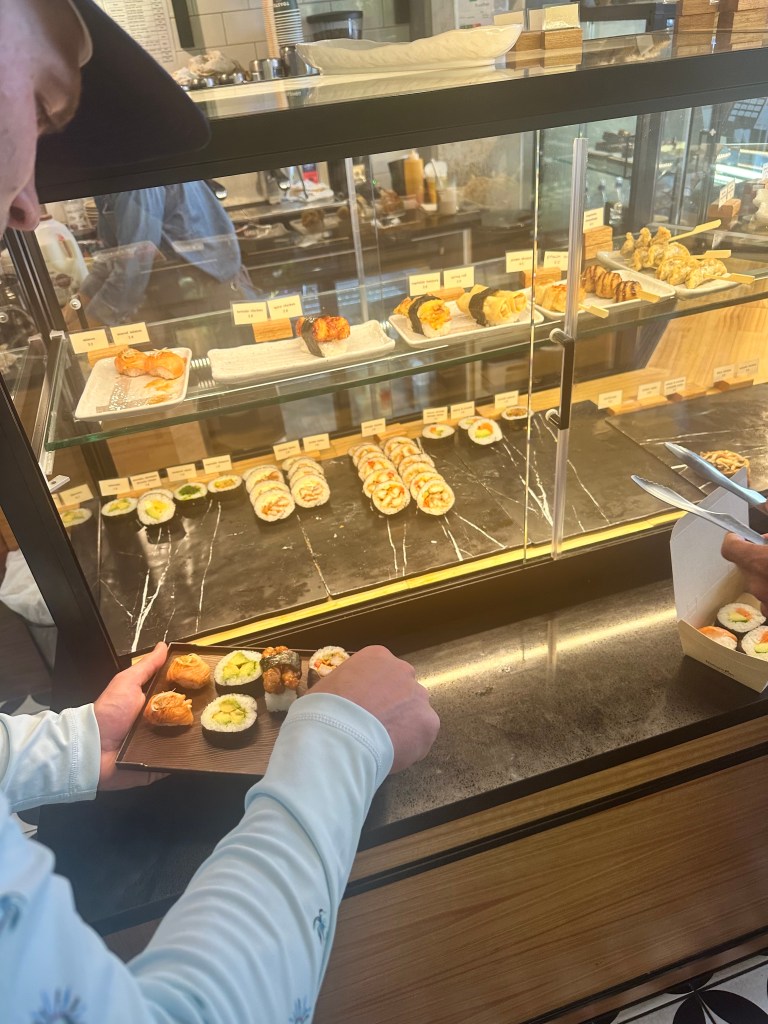 After the beach and climbing, we grabbed a quick sushi snack. Assessing the waves, we decided boogie boarding would be the next activity. Anna was first up on the paddle board and only fell once (quite gracefully). Despite Brian’s water skills, he fell infinitely more times given his relentless desire to catch at least one wave. Mac showed us how to catch a few waves on the paddle board, but instead of continuing with that solo activity, he proposed boogie boarding for everyone. Known for her speed and trickery, Anna became the fan favorite and won every wave race.