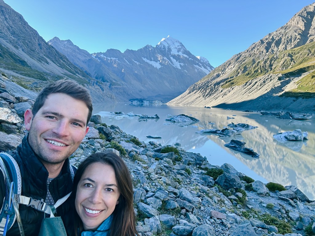 The beginning of the big 3 (hikes)! Over 14 miles and 4,000 feet of elevation were on the docket. With our packs full of snacks and water, we started on the Hooker Valley Lake Trail. This was a nice 6 mile, relatively flat, warmup. Each turn led us closer and closer to Mt. Cook – Anna swore each turn had a better view than the one prior – see below for documentation. At the base of Mt. Cook was Hooker Lake, filled with remnants of an old glacier.