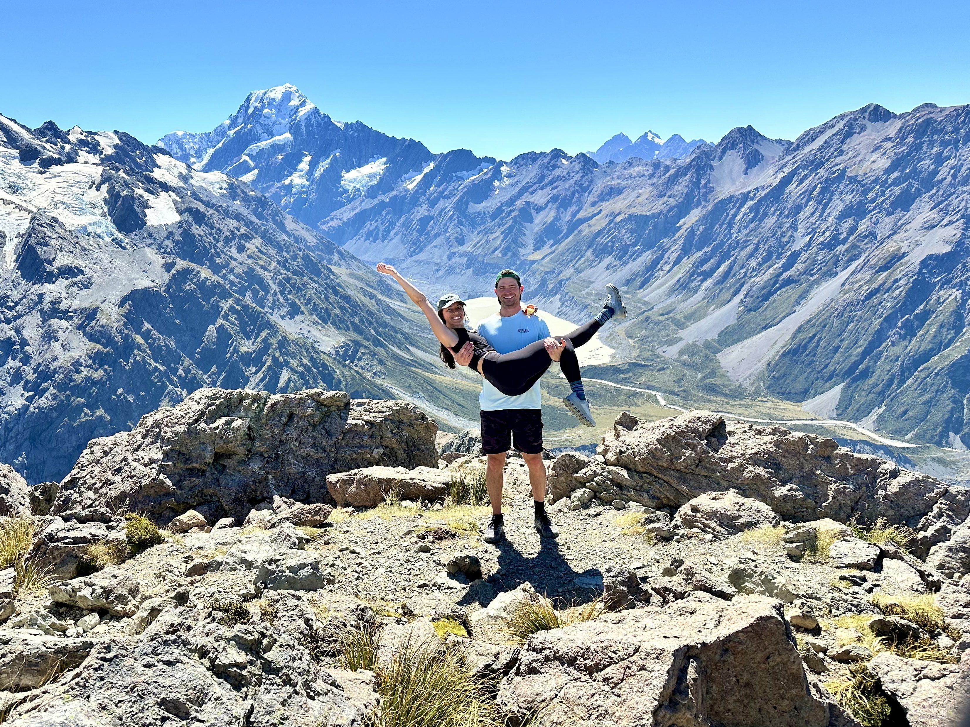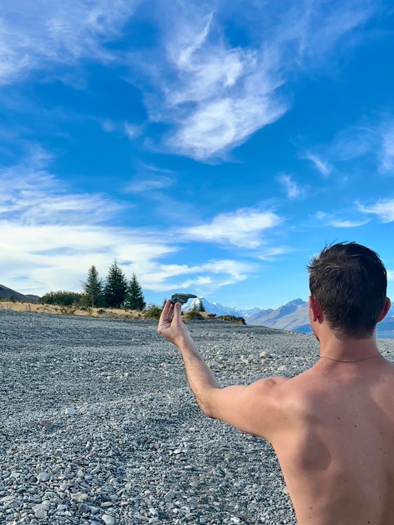 Since we finished the hikes earlier than expected, we ventured back to Lake Pukaki for some ‘ice bath’ and stone skipping. To be honest, the water wasn’t that cold and Brian wasn’t that good at skipping stones. But it was a super relaxing way to end the day with amazing views of Mt. Cook.