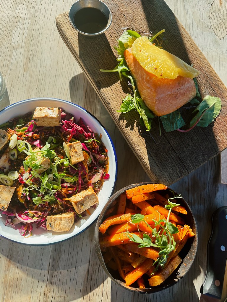 You guessed it, food was up next – and lattes. We stopped at Curbside Coffee and Bagels for a matcha latte. Second stop was Good Spot for a turmeric latte. Third stop was back to Dripping Bowl for acai. We changed back at our place and hit the beach for a swim. You must be thinking that wasn’t really much of a breakfast after another 4000 foot, 10 mile hike. Lunch came early with a burrito bowl and mango smoothie. We then did some more beaching, swimming, relaxing, and reading.