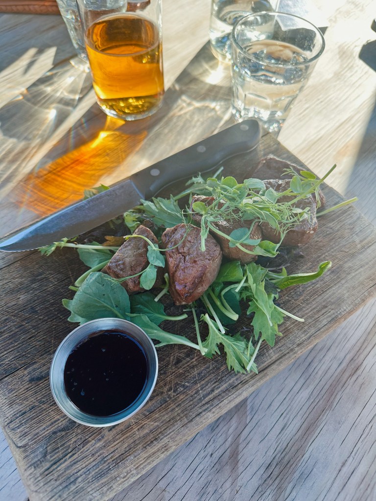 Our AirBnb was a little outside of town and was very close to a cool new restaurant called The Stoaker Room. A stoaker is a converted wine barrel that is designed to steam and smoke meat with a unique oaky flavor. We were stoaked to try it. We were stoaked while trying it. We were stoaked after. We had venison with a cherry glaze and salmon topped with pineapple and teriyaki. We added caramelized carrots and an Asian salad. And then came the crack pie – true to its name. Thick ground graham cracker like crust with soft rich caramel on top – and a little vanilla a la mode. Talk about stoaffed. We needed a few more steps to get to 30k and so we hit the beach one more time for sunrise. Pretty epic day – tomorrow is our last full day.