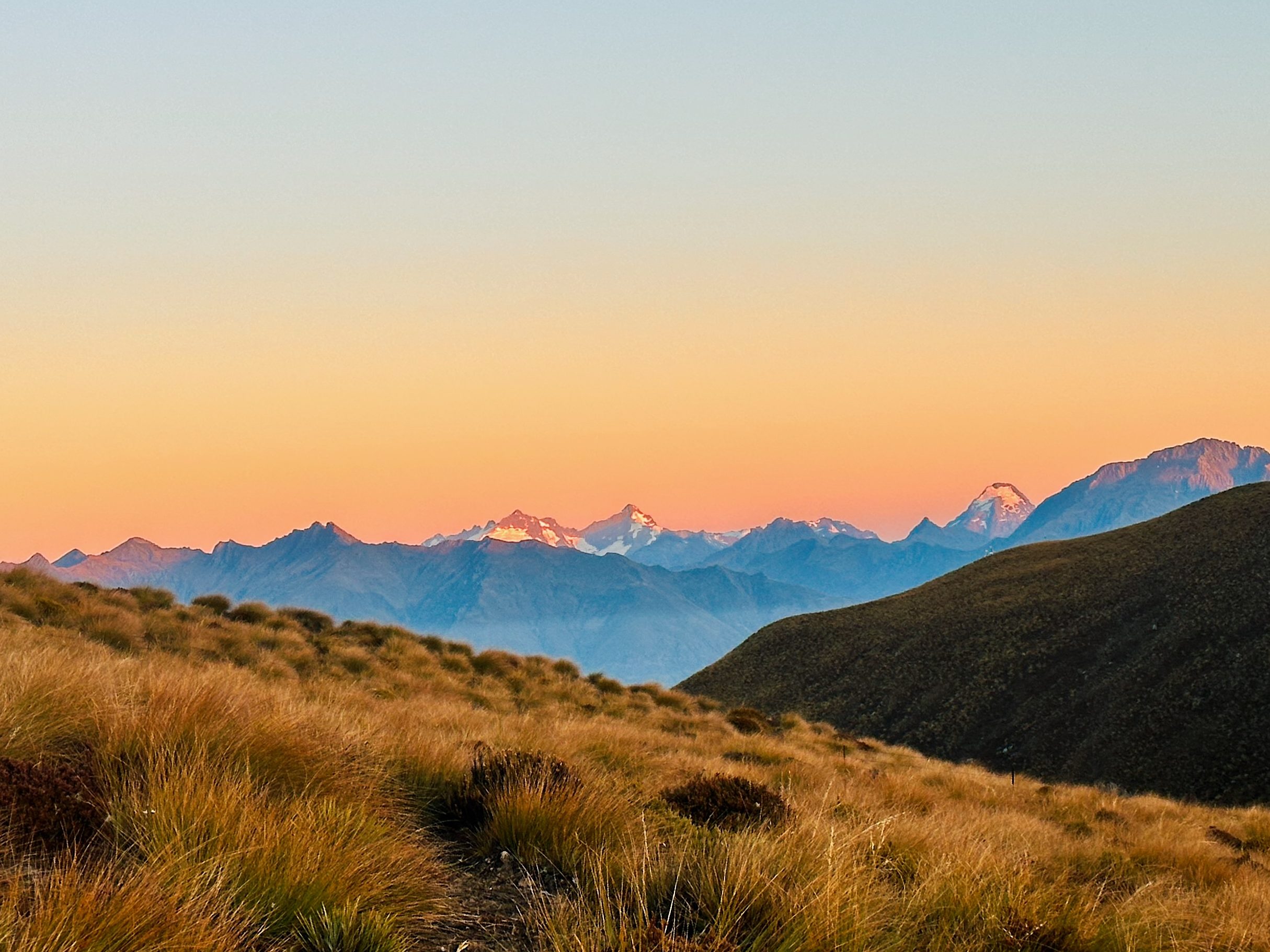 Big hike number 3 of 3! The plan was to get up with our 4:30 am alarms. We both looked at each other and agreed without saying anything that maybe we would just take a pass on this hike. After snoozing for 20-25 minutes, we then looked at each other and decided that since we were up, it would be time to go, up! Our bags were already packed so we got in the car for the 30 min drive to Isthmus Peak. Unlike Roy’s Peak (packed lot), there were only 2 other cars in the parking lot. At no point did we feel unsafe, but if you prefer the idea of hiking with/around other people in the dark, this hike may not be for you. With about ½ mile left to the summit, the sun started to peak out from behind the mountains to the east. Anna lead the charge and we dashed to the top! It was probably a tie between our summit and the sunrise. We took some photos and obviously Brian managed to climb something else. We alternating walking and jogging down.